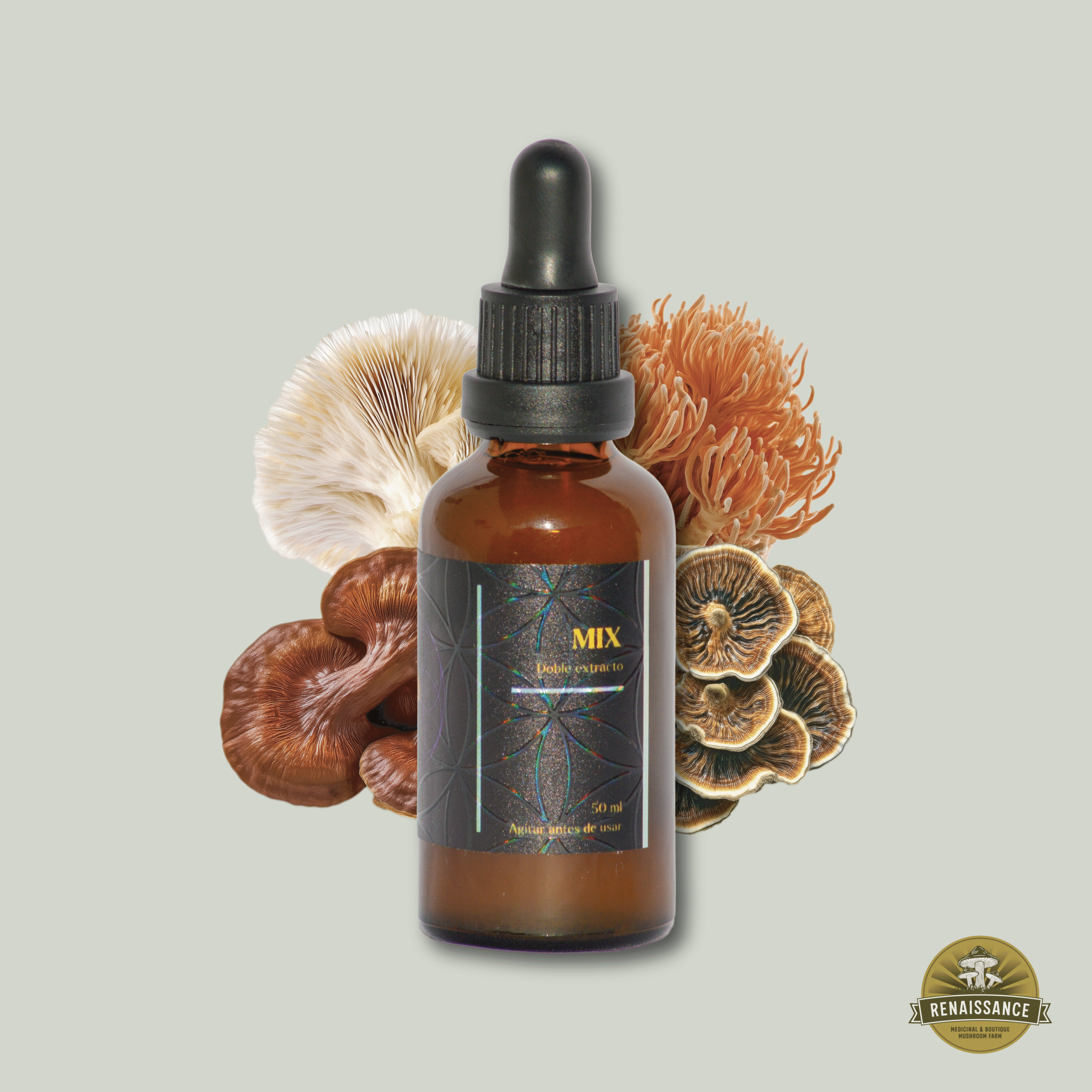 Extracto creado a partir de la combinacion de Melena, Cordyceps, Reishi y Cola de Pavo para quienes buscan un equilibrio integral mas generalizado y no tan especifico